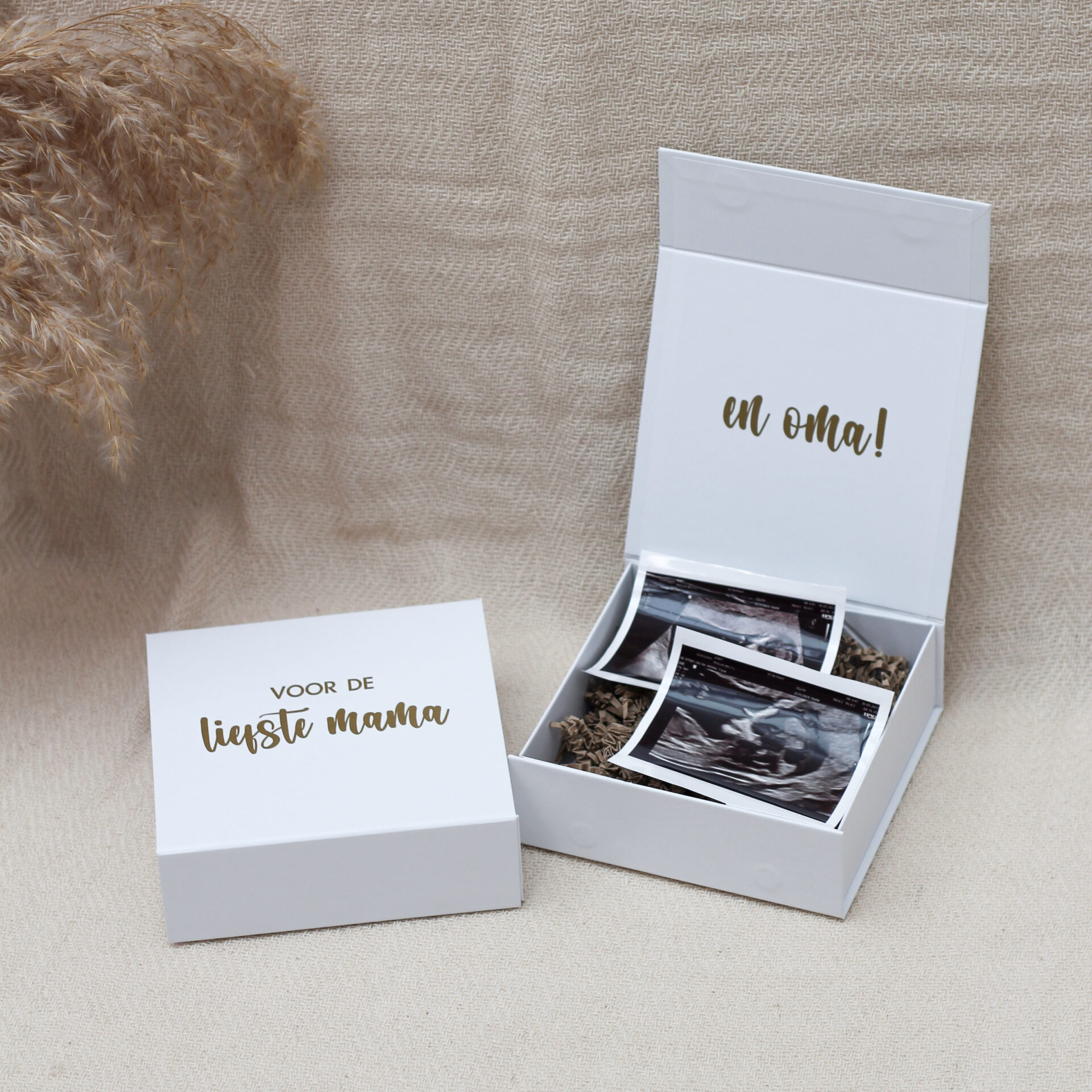 Vul de box met een echofoto, schattige babysokjes of een persoonlijk berichtje om het nieuws extra speciaal te maken. Een originele en liefdevolle manier om dit bijzondere nieuws te delen met de toekomstige oma.