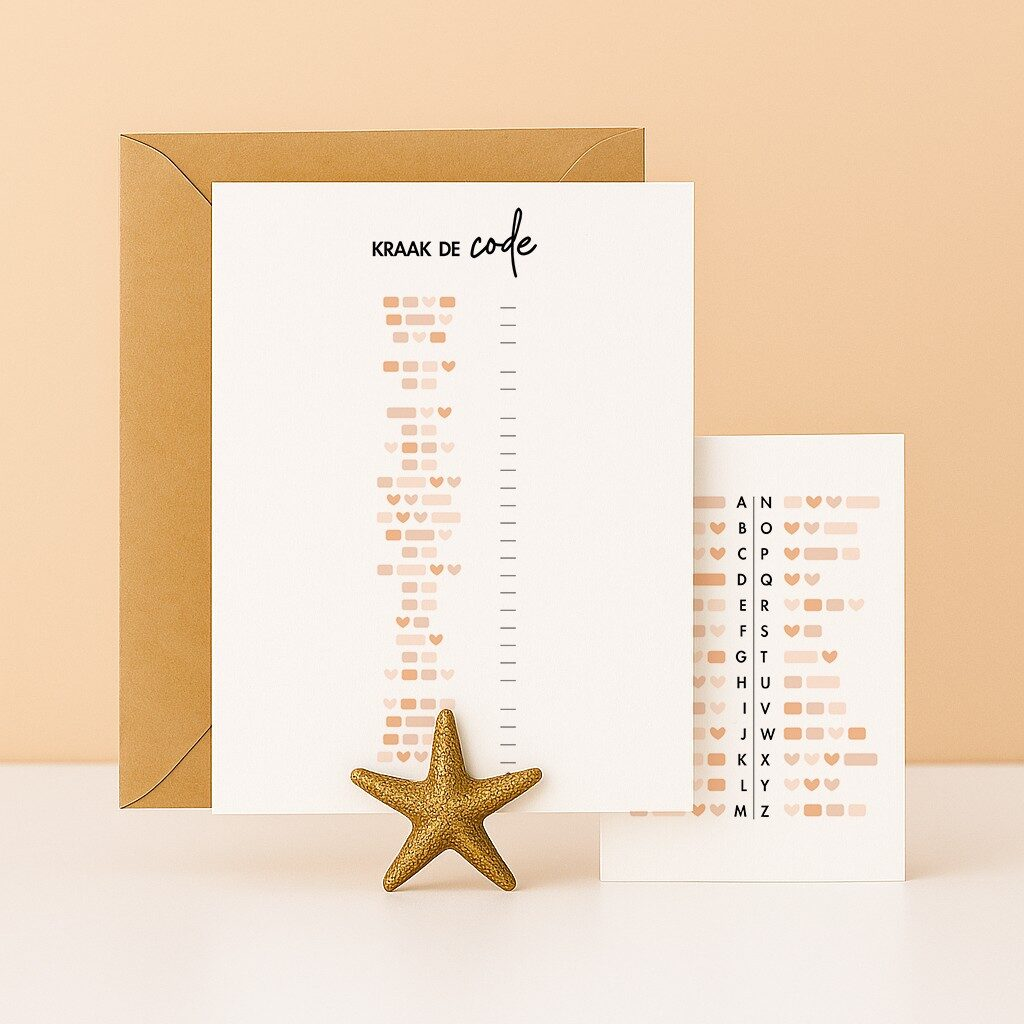 Op zoek naar een leuke en verrassende manier om je ceremoniemeester te vragen? Met deze morsecode-kaart maak je er echt een bijzonder moment van. De vraag Wil jij ceremoniemeester zijn? staat in morsecode en moet eerst ontcijferd worden. Bij de kaart krijg je een handige uitlegkaart met het hele morse-alfabet, zodat de toekomstige ceremoniemeester de vraag zelf kan ontcijferen.