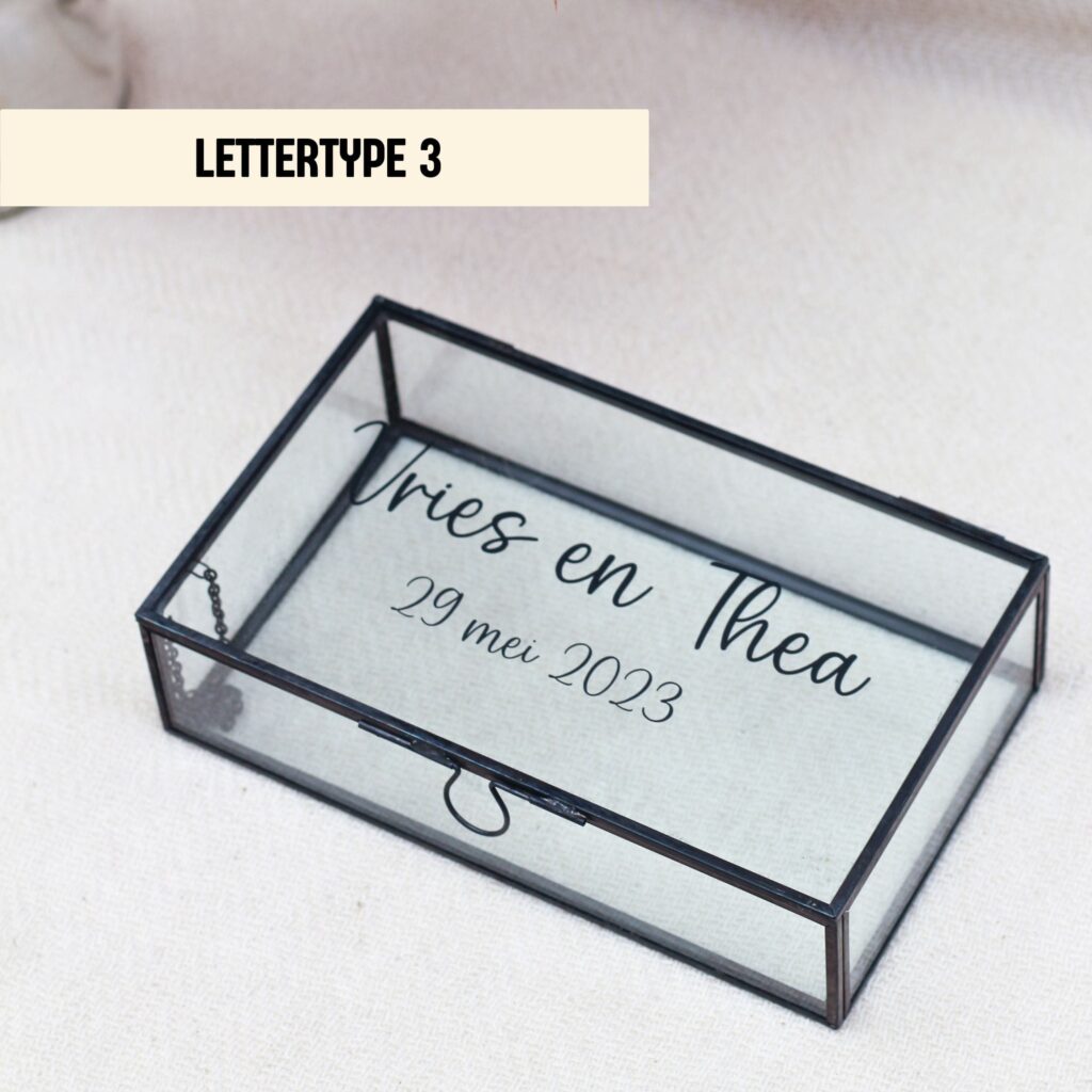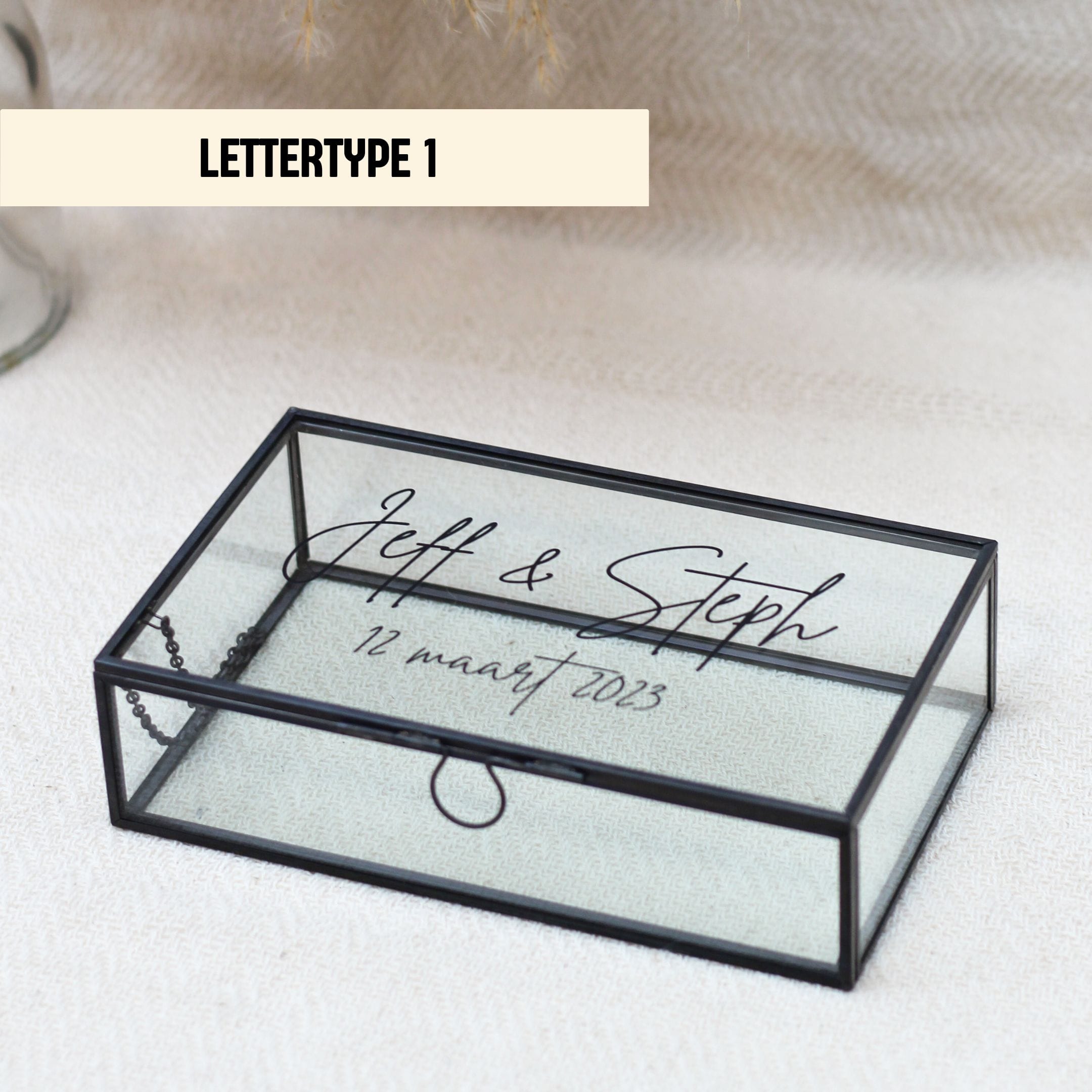 Deze glazen memorybox is een prachtig en veelzijdig item dat je voor tal van bijzondere gelegenheden kunt gebruiken. Of je nu op zoek bent naar een alternatief gastenboek voor je bruiloft, een enveloppendoos of een elegante glazen bewaarbox voor foto’s, wenskaarten of herinneringen – deze gepersonaliseerde box voegt een unieke touch toe. Hij is ook een perfect cadeau voor een housewarming, jubileum of verjaardag.